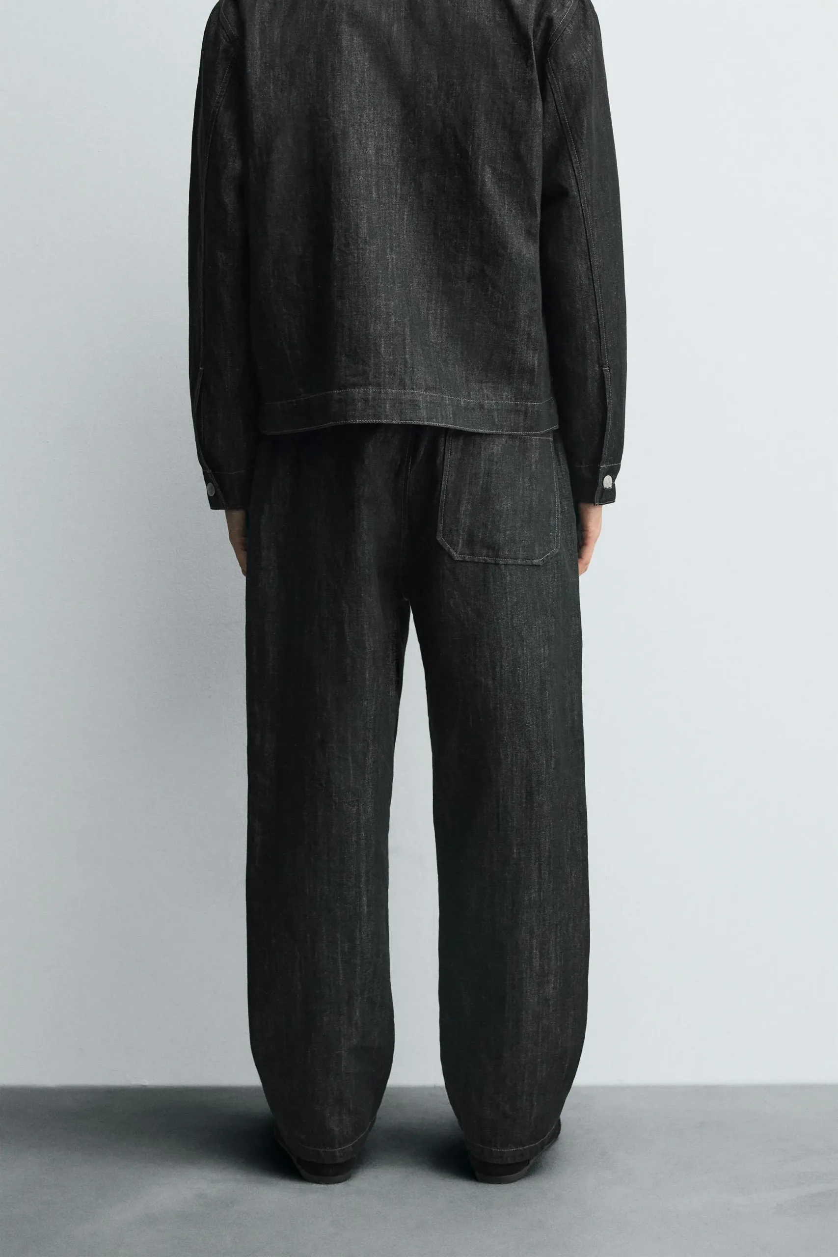 Relaxed fit jeans made of unwashed cotton denim. This gives them a stiff appearance when first worn, which will be lost over time as the garment is worn.