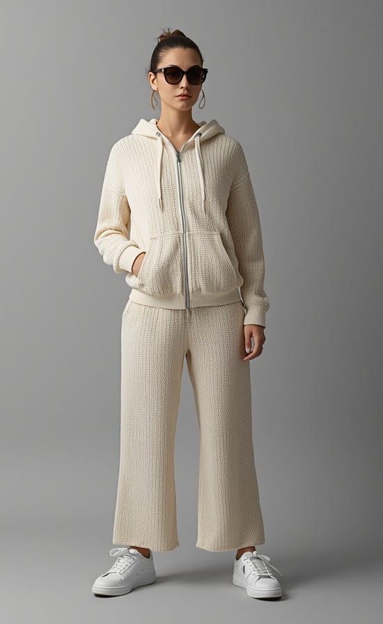 Hoodie with an adjustable drawstring hood. Long sleeves with cuffs. Elasticated hem. Metal zip-up front.