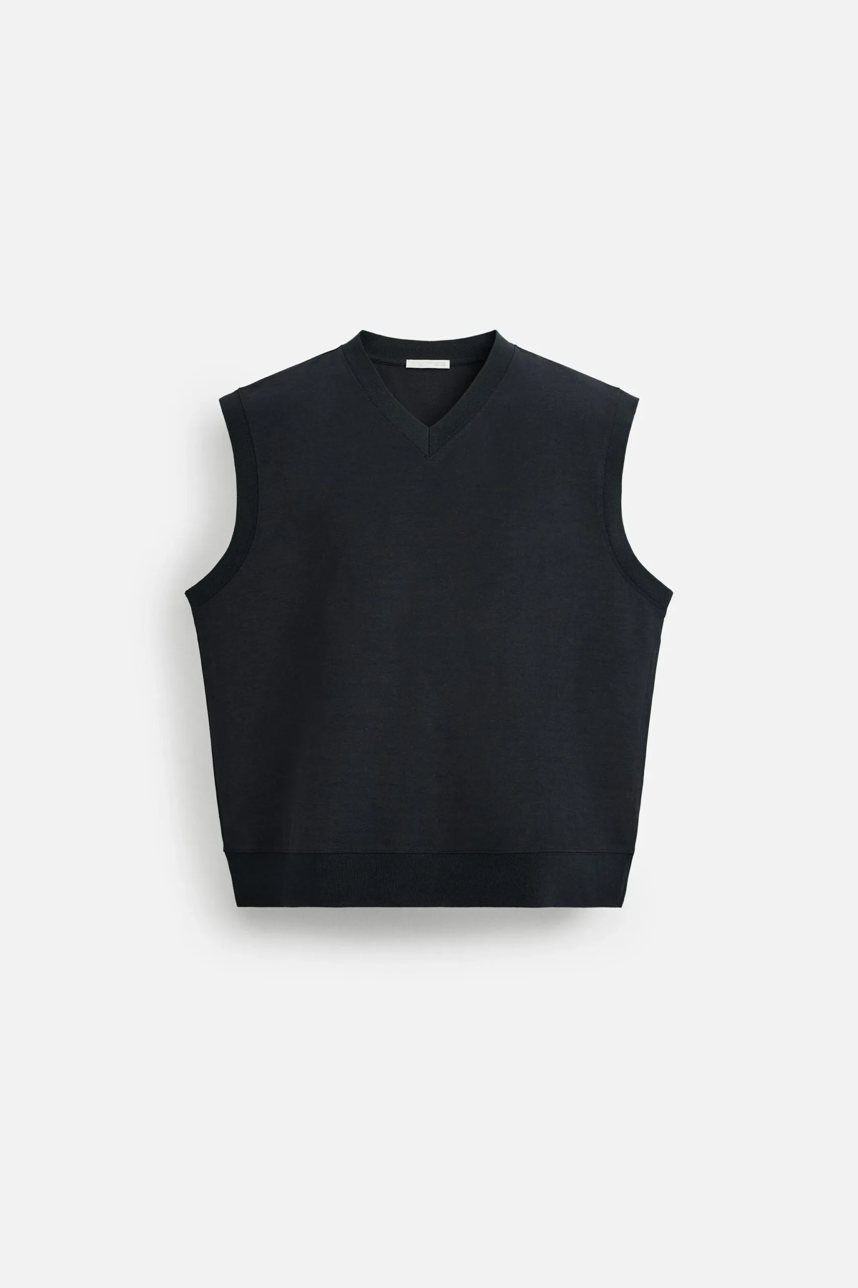 Relaxed fit T-shirt made in technical fabric. V-neck and sleeveless design. Ribbed trims.